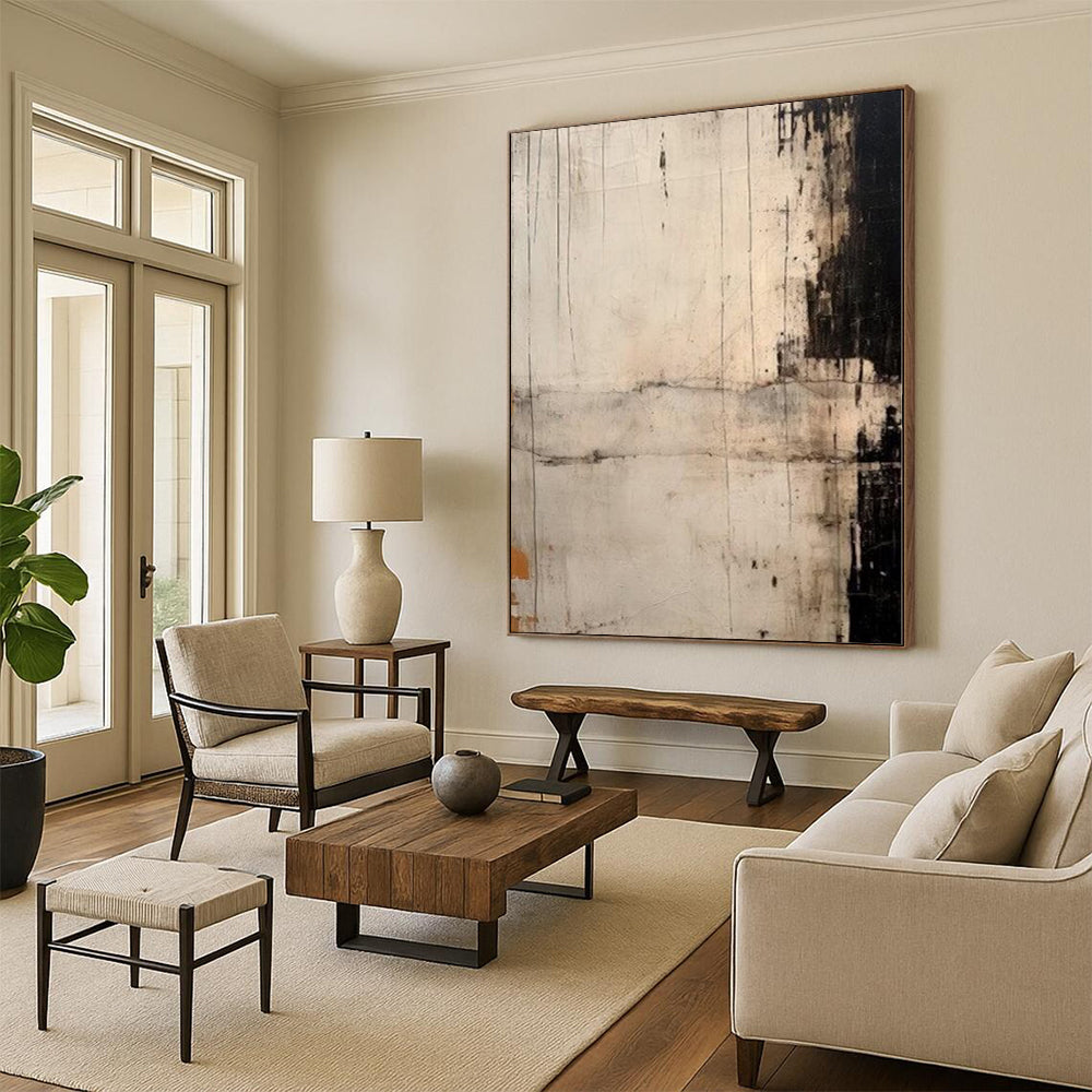 The artist was drawn to the raw, unrefined beauty of industrial spaces. They started with a palette of muted grays and blacks, applying paint in thick, uneven layers to mimic the texture of concrete walls and aged metal. Each stroke was a deliberate attempt to capture the essence of decay and resilience, much like the industrial structures that inspired it. Over time, the artwork evolved into a visual narrative of history and endurance. This sizable piece is perfect for an industrial - inspired loft, where it can serve as a focal point, sparking conversations about the beauty in imperfection. Hang it, and let the artist’s exploration of monochrome textures transport you to a world where every mark tells a story of time’s passage.