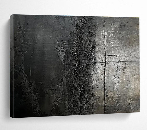 Dark Textured Abstract Canvas Painting, Perfect for Industrial - Chic Lounge & Dramatic Entryway LargeART1295