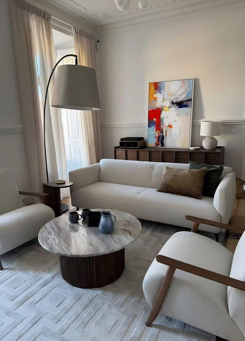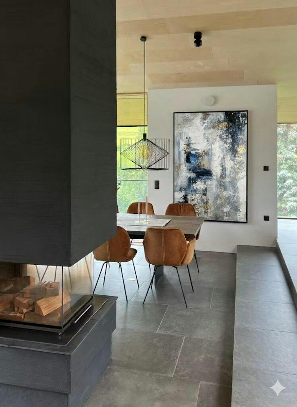 This piece feels both abstract and chic, while adding a cozy warmth to the room—a rare and delightful blend in art!